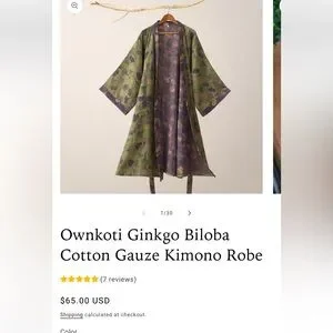 Experience comfort and elegance with the Cotton Gauze Kimono Robe. Featuring a beautiful green and purple design, this robe is perfect for lounging in style.