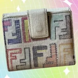 FENDI Zucca Spalmati Multicolor FF Logo Cream Leather Compact Wallet w/ COA