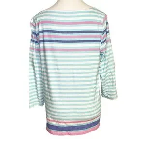 The bright colors and classic stripes give this top a preppy, coastal vibe. It is likely made from a soft cotton or jersey knit, making it an ideal choice for everyday wear or a casual weekend outing.