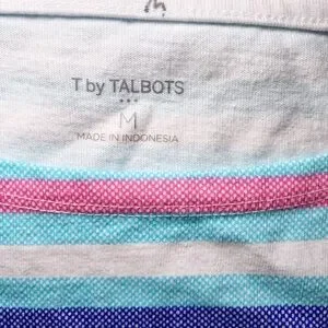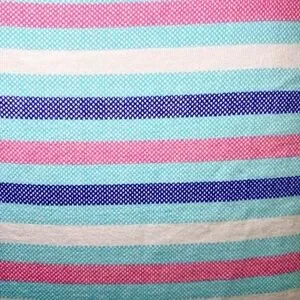 • Color Palette: The stripes consist of aqua blue, light pink, and dark purple set against a crisp white background.