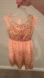 Size 6. Delicate peach dress with shimmering gold sequins. Sleeveless design with a full skirt for twirl-ready movement. Sparkling details create a festive, eye-catching look for special occasions.