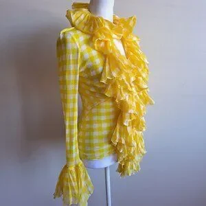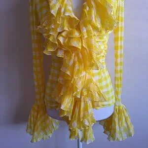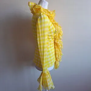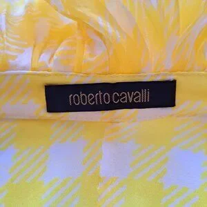 Roberto Cavalli Yellow Ruffle Sheer Silk Blouse Size 38 / XS