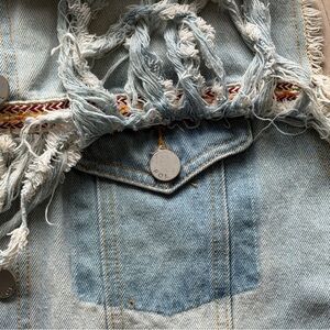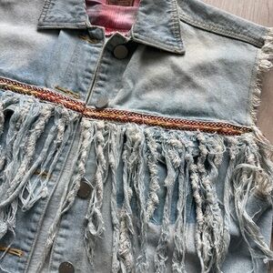 POL Women’s Size Small Light Washed Frayed Fringe Denim Vest 100% Cotton