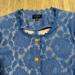 New Tahari ASL Royal Blue Lace Cropped Blazer with Gold Buttons size 14