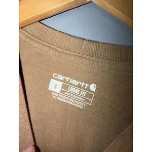 Carhartt Loose Fit Pocket T-Shirt Mens Small Tan Brown Distressed Workwear