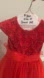 Elegant red tulle skirt with a beaded embellished bodice. Ruched waist detail enhances the silhouette. Cap sleeves and a full, flowing skirt create a classic formal look. Ideal for pageants and special events. A few loose stones, not obvious on stage. Professionally cleaned.