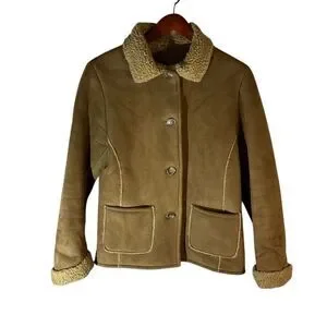 Fjall Sherpa Jacket, Small. Brown Pockets. Faux Suede, Shearling. Thick and warm