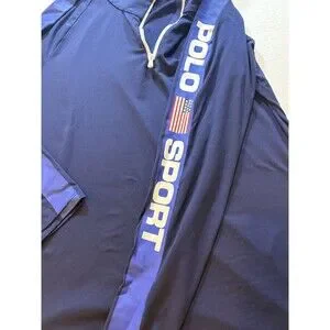 This Women's Polo Ralph Lauren light jacket in navy blue is perfect for tennis enthusiasts. Made from polyester, the jacket features a windbreaker style with an open front for ease of movement during active play. The size large is designed for a regular fit, making it comfortable for both wear and performance on the tennis court. The iconic Ralph Lauren brand adds a touch of sophistication to this functional and stylish outerwear piece.