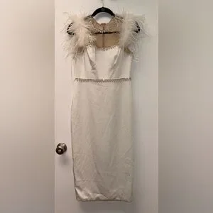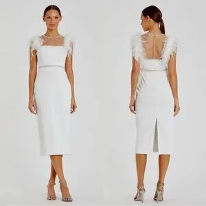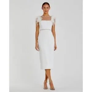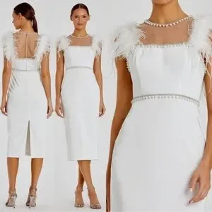 NWOT MAC DUGGAL FEATHER CAP SLEEVE PEARL EMBELLISHED T-LENGTH FIT DRESS sz 6