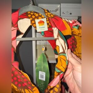 Farm Rio colorful sunflowers midi dress, size XS NWT, never worn. Open back and adorable flower buttons in front.