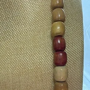 Enhance your style with this chic wooden beaded necklace. Featuring a beautiful blend of tan and red beads, this piece adds a natural elegance to any ensemble. Could use to repurpose into something beautiful.