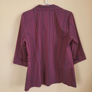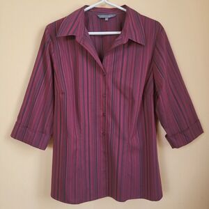 Addition Elle Burgundy Vertical Striped Button Down Blouse Size 14