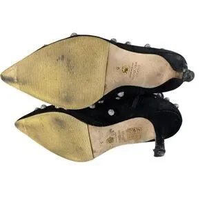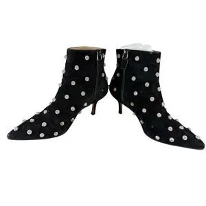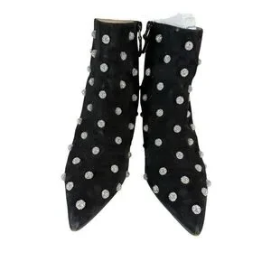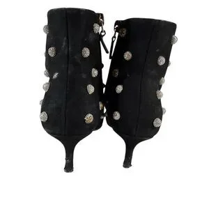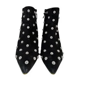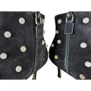 ankle boots, suede boots, crystal embellished, pointed toe, stiletto heel, evening shoes, dress boots, black boots, designer shoes, luxury footwear, statement shoes, fair condition
