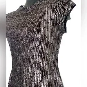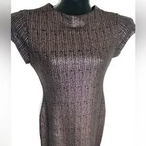 Stella Luce Metallic Ribbed Cap-Sleeve Midi Dress *NWOT