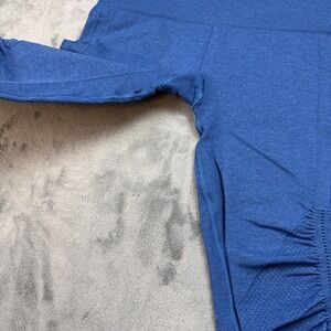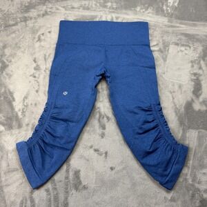 Lululemon Crop Leggings Womens Medium Blue Seamless Ruched Workout Yoga Pants