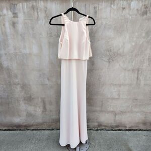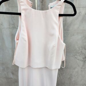 preloved modern clean special occasion maxi dress in the lightest of pinks. could be used as special occasion, bridesmaid,. light pink. Gently preloved condition. Any flaws will be noted.