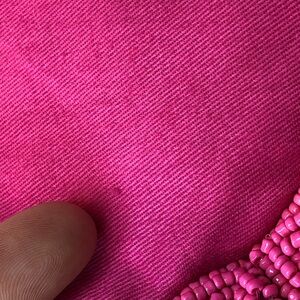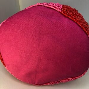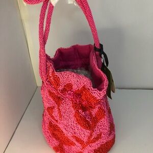 Chic beaded bucket bag by Kate Spade. Features vibrant pink and red design.