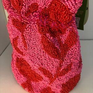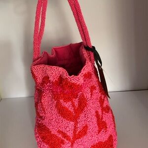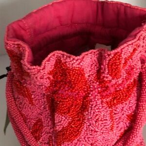 KATE SPADE X TARGET Beaded Classic Rose Drawstring Bucket Bag Pink Red NEW