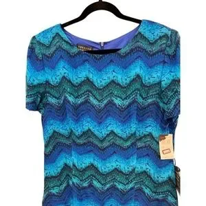 Spenser Jeremy Silk Short Sleeve Blue Green Layered Dress Size 14 NWT