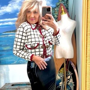VTG Morgan de Toi, Paris, Cotton Blend Cream/Wine Double Row Crop-Jacket/Top, (even the shoulder pads are so cool, EUC, Size M please review all measurements before purchasing:) POCKETS!! secondhand #vintage #preloved #secondbranded #blouse #fashion #style #ootd #fashion · #prelovedfashion · #thriftedfashion · #secondbranded · #secondhandstyle · #thrifted · #secondhandfashion #secondhand #sustainablefashion #vintage #preloved #secondhandclothes #thrift #vintagestyle #slowfashion #thrifting #fashion #prelovedfashion #thriftedfashion #secondbranded #secondhandstyle #thrifted #thriftstorefinds #secondhandshop #vintagefashion #vintageclothing #ootd #thriftshop #prelovedbranded #secondhandfirst #secondstuff #s #thriftfinds #prelovedclothes #vintageshop #style #classy #preloved