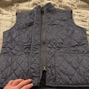 Stay stylish and warm with this elegant quilted vest. Perfect for layering, this blue vest adds a touch of sophistication to any outfit.
