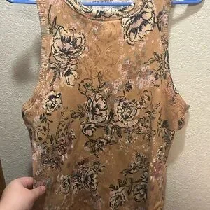 Add a touch of elegance to your wardrobe with this floral print tank top. The brown hue offers a warm and versatile look, perfect for any occasion.