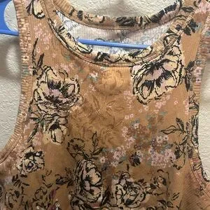 Floral Print Tank Top - Tan