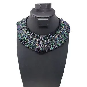 Elevate your style with this stunning handcrafted statement necklace. Its multicolor beads and shimmering rhinestones create a bold, eye-catching accessory.