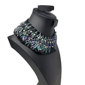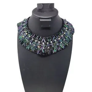 Vintage Handcrafted AB Oil Slick Beaded Statement Bib Collar Necklace Cleopatra
