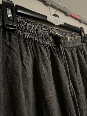 Lightweight palazzo wide leg pants in brown. Flowy design for comfortable all-day wear. Elastic waist for easy fit. Versatile brown color pairs with many tops. Casual and breezy style. Had a spot on leg that torn has been professionally sewn.