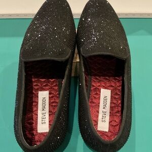 Steve Madden Cirius Black Crystal Slip-On Loafers Size 10