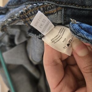 From folded off-the-shoulder neckline to ankle-length hem, this jumpsuit is an easy addition to your wardrobe. Slightly distressed edges give balance to the sleek shape with vertical seams that flatter. The button front and flap pockets stay true to the classic blues you love, but in an instant outfit! * Removable adjustable straps included * Fly zip closure * Functional buttons down front * Non-functional pocked at front * 28" inseam * Fabric has some stretch * Cotton/poly/elastane. Imported