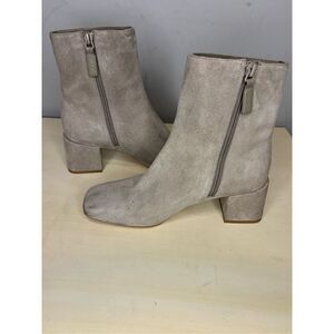 Vince Women's Kaye Suede Square Toe Block Heeled Bootie Grey Size 6