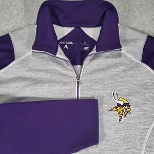 Minnesota Vikings 1/4 Zip Antigua Mens Small Gray Purple Embroidered Logo