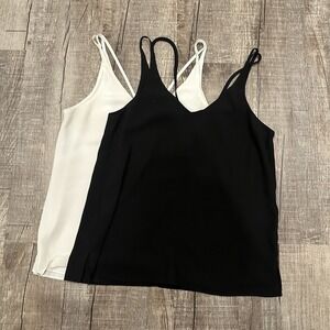 TopShop Lot of 2 Strappy Tank Top V Neck Sleeveless Black White Womens Size 2 US