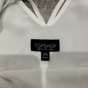 TopShop Lot of 2 Strappy Tank Top V Neck Sleeveless Black White Womens Size 2 US. great used condition. white top does have some staining to the pit and collar area as pictured and black has a small spot as well. both are lined and has double back straps and lining. 100% polyester