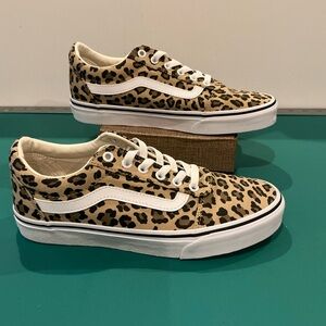 Vans Women's Ward Low-Top Leopard Print Sneakers in Black and White Size 9