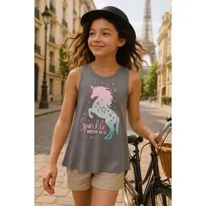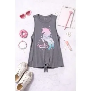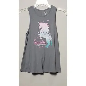 Keywords: girls tank top, unicorn shirt, sparkle top, sleeveless shirt, racerback tank, kids graphic tee, childrens clothing, tween fashion, summer top, playwear, activewear, wonder nation, xl girls, 14-16 size
