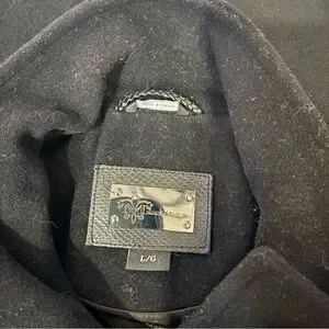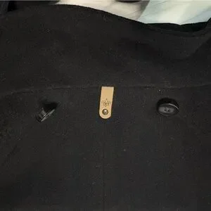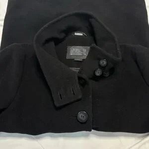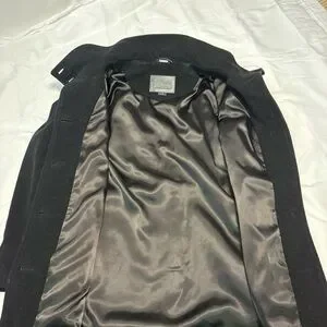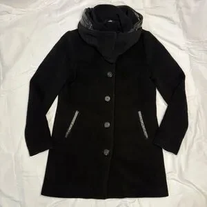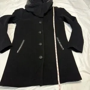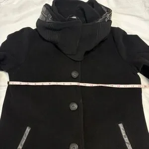 Mackage Wool Cashmere Coat Black Leather Trim Removable Collar Hood Size L