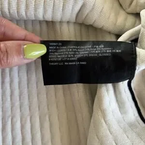 Features: Theory Black and White Sleeveless Fit and Flare Mini Dress; fit and flare style, black and white slit layered look, round neckline, sleeveless. 76% rayon, 21% nylon, 3% spandex