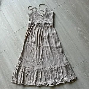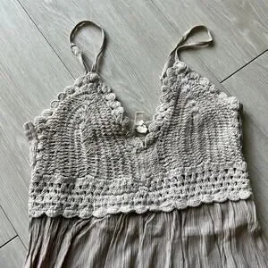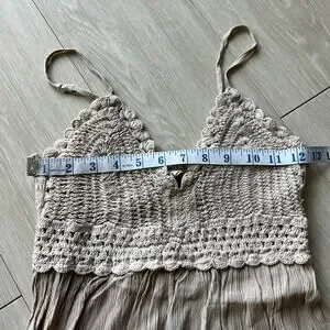 Hint Of Blush Dress Small Crochet Top Boho Tan Flaws