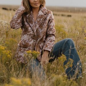 Make a bold statement with the Cows Come Home Blazer, featuring an eye-catching cowhide pattern that adds a unique edge to your wardrobe. Designed to stand out, this blazer effortlessly combines classic tailoring with wild style, perfect for elevating any outfit. Whether at a casual gathering or a night out, this blazer brings confidence and character to your look. NOT real cowhide, just a print, but it feels like hair. The cow print has a slight pink hue which you can see in some of the pictures. Size down in small sizes and stay in your size in plus as there is no stretch.... just an opinion.