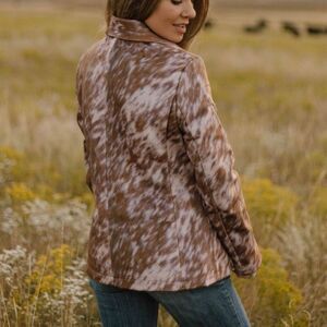 Rustic Chic: Cow Print Blazer - Western Faux Hide Casual Jacket New