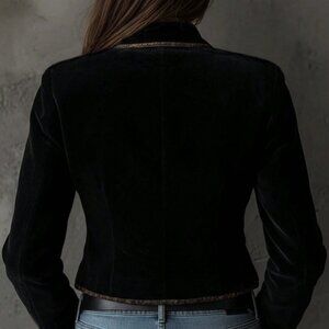 Elevate everyday style with this black casual double‑breasted blazer, designed for a relaxed regular fit and short length that layers effortlessly in spring or fall. The garment is fully lined for comfort and features a distinctive random print that adds subtle visual interest. A classic double‑breasted placket with sturdy buttons creates a polished silhouette, while the regular sleeves and hem maintain a timeless shape. Ideal for travel or weekend outings, this blazer offers versatile layering without pockets for a sleek, streamlined look.