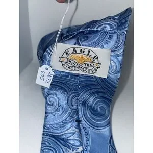 Eagle Shirtmakers Mens Blue Paisley 100% Silk Necktie Formal Business Tie