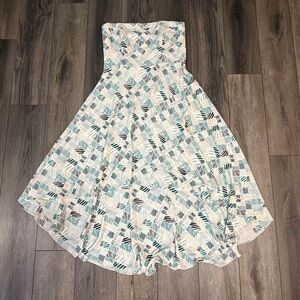 White House Black Market Geometric Strapless High Low Midi Dress Blue White 12
