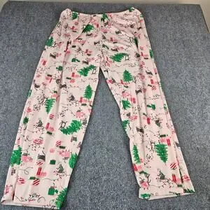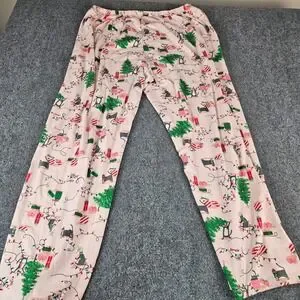 HUE Pink Christmas Cat Pajama Pants Womens 2X Holiday Lounge Sleepwear Wide Leg