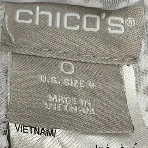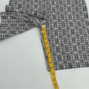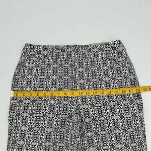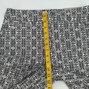 These chic Bermuda shorts from Chico's feature a striking black and white geometric pattern, offering a bold and stylish look. Crafted from a structured fabric, they provide a comfortable fit that maintains its shape. Perfect for making a statement, these shorts are versatile enough to pair with a variety of tops.