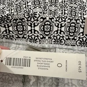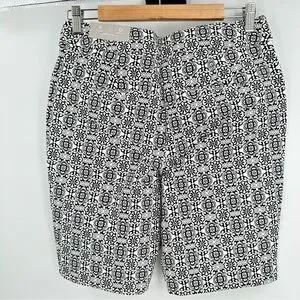Chico's Black and White Geometric Bermuda Shorts NWT Pockets Women’s Size 0/US 4