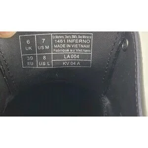 The Dr. Martens 1461 INFERNO Arcadia 3-Eye Shoes in Black Silver Flames are a stylish and edgy pair of sneakers perfect for unisex wear. WOMENS SIZE 8 MENS 7 . Featuring a lace-up closure, leather outsole, and comfortable insole, these shoes are versatile for various occasions including activewear, casual outings, and workwear. With a unique animal print pattern and silver accents, these sneakers embody a classic yet modern style reminiscent of the 90s. Dr. Martens' renowned brand and quality craftsmanship make these shoes a standout choice for anyone looking to make a statement with their footwear. NO BOX